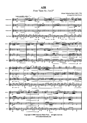 Air - Sheet Music for clarinet quartet J. S. Bach (aus: Suite Nr. 3 in D)