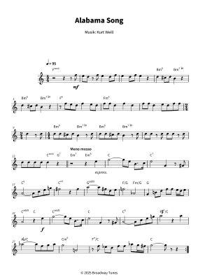 Alabama Song - Sheet Music for Tenor saxophone solo and chords - Leadsheet Kurt Weill