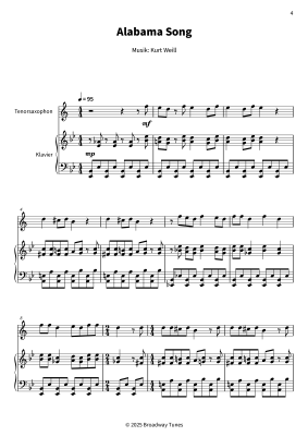 Alabama Song - Sheet Music for tenor saxophone and piano Kurt Weill