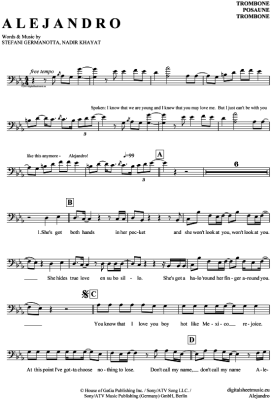 Alejandro - Sheet Music for Posaune / Bariton Lady GaGa