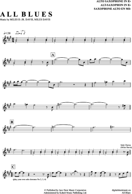 All Blues - Sheet Music for Alto Saxophone Miles Davis