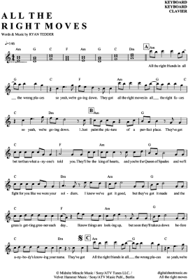 All the right moves - Sheet Music for Keyboard OneRepublic