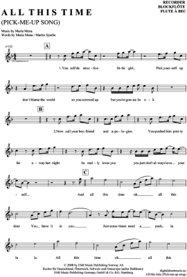 All this time (Pick-Me-Up Song) - Sheet Music for recorder Maria Mena
