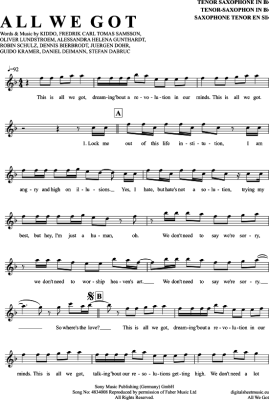 All We Got - Sheet Music for Tenor Saxophone Robin Schulz und Kiddo