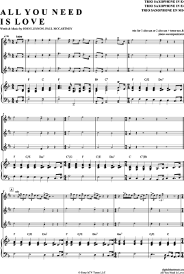 All You Need Is Love (Saxophon Trio AAA(T) - Sheet Music for + piano The Beatles