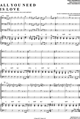 All You Need Is Love - Sheet Music for Trombone Trio + Piano The Beatles