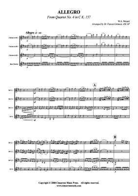 Allegro aus Quartett Nr. 4 in C - Sheet Music for clarinet quartet W. A. Mozart (K.157)