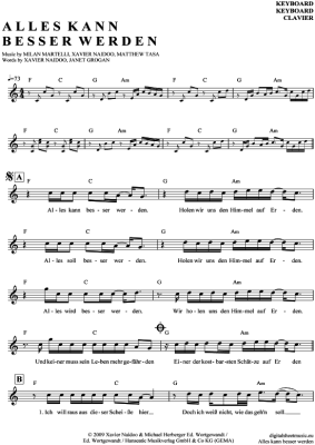 Alles kann besser werden - Sheet Music for Keyboard Xavier Naidoo