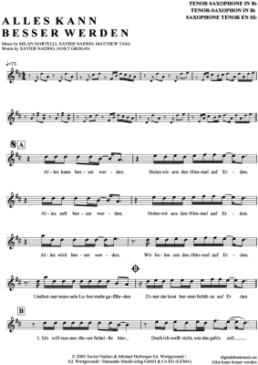 Alles kann besser werden - Sheet Music for Tenor Saxophone Xavier Naidoo