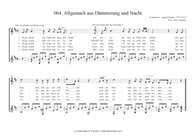 Allgemach aus Dämmerung und Nacht - Sheet Music for guitar + vocals August Harder 1775-1813