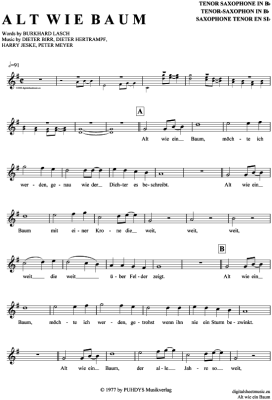 Alt wie ein Baum - Sheet Music for Tenor Saxophone Puhdys