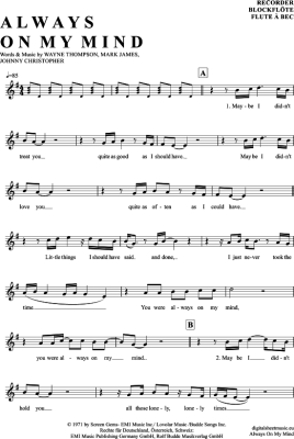 Always on my mind - Sheet Music for recorder Elvis Presley