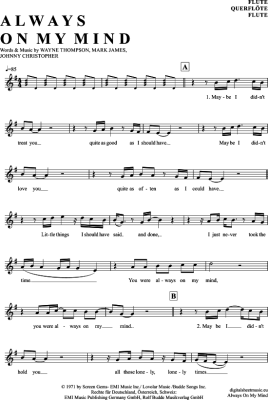 Always on my mind - Sheet Music for transverse flute Elvis Presley