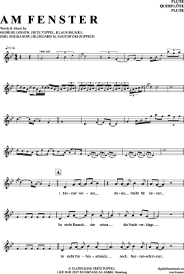 Am Fenster - Sheet Music for transverse flute City