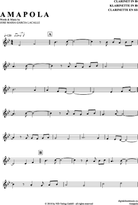 Amapola - Sheet Music for Clarinet in B-flat Joseph Lacalle