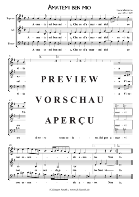 Amatemi ben mio - Sheet Music for Mixed choir SAT Luca Marenzio (1553 - 1599)