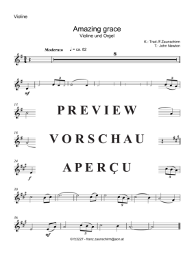 Amazing Grace - Sheet Music for Violine Solo + Orgel-Playback Traditional/Zaunschirm