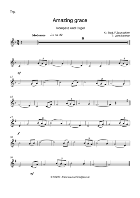 Amazing Grace - Sheet Music for Trompete in B Solo + Orgel-Playback Traditional/Zaunschirm