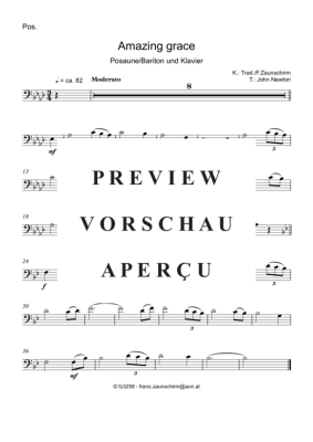 Amazing Grace - Sheet Music for Posaune Solo + Keyboard Playback Traditional/Zaunschirm