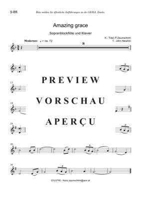 Amazing Grace - Sheet Music for soprano/tenor recorder + piano playback Traditional (Zaunschirm)