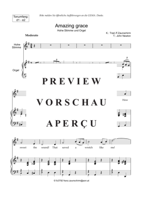 Amazing Grace - Sheet Music for High Voice and Organ Traditional