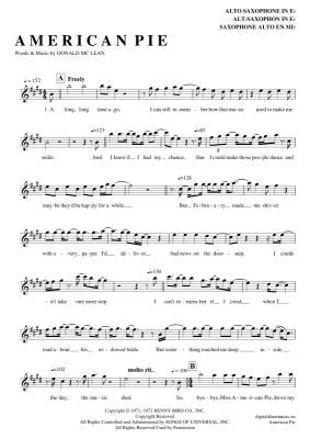 American Pie - Sheet Music for Alto Saxophone Don Mclean