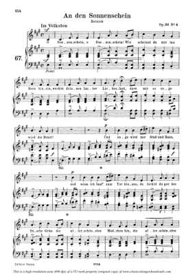 An den Sonnenschein, Op 36 No.4 - Sheet Music for Medium Voice and Piano Robert Schumann