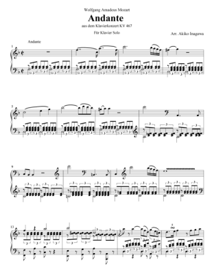 Andante aus dem Klavierkonzert KV467 - Sheet Music for Piano Solo Wolfgang Amadeus Mozart (arr. A. Inagawa)