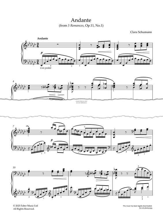 Andante (from 3 Romances, Op. 11 No.1) by Clara Schumann. Arranged for piano solo in digital sheet music format.
