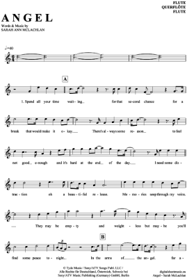 Angel - Sheet Music for transverse flute Sarah McLachlan