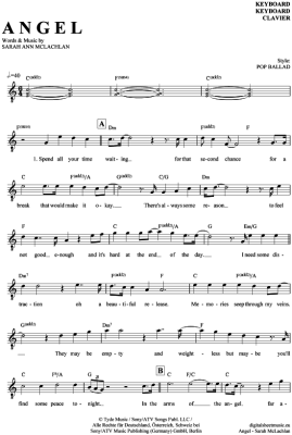 Angel - Sheet Music for Keyboard Sarah McLachlan