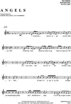 Angels - Sheet Music for recorder Robbie Williams