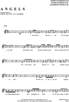 Angels - Sheet Music for Tenor Saxophone Robbie Williams