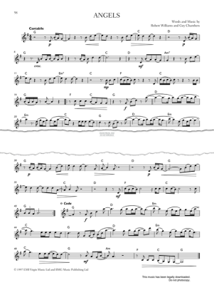 Angels, composed by Guy Chambers and Robbie Williams and arranged for clarinet solo in digital sheet music format.