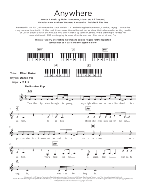 Anywhere - Sheet Music for Rita Ora