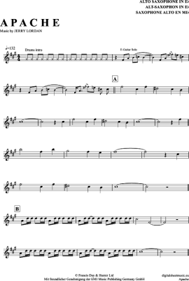 Apache - Sheet Music for Alto Saxophone The Shadows