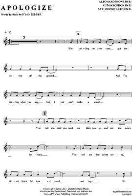 Apologize - Sheet Music for Alto Saxophone Timbaland feat. OneRepublic
