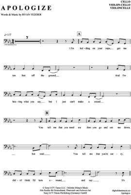 Apologize - Sheet Music for Violon-Cello Timbaland feat. OneRepublic