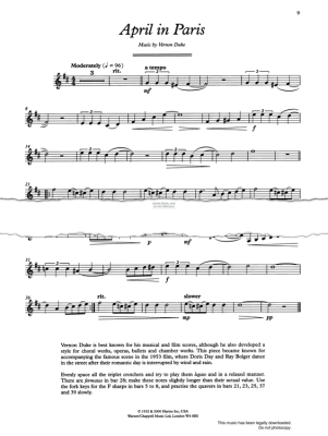 April In Paris, written by Vernon Duke and arranged for clarinet with piano accompaniment.
