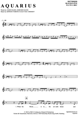 Aquarius - Sheet Music for recorder Hair (Musical)