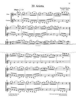 Arietta, composed by Theobald Boehm and arranged by Paul Harris for flute and clarinet duet in digital sheet music format.