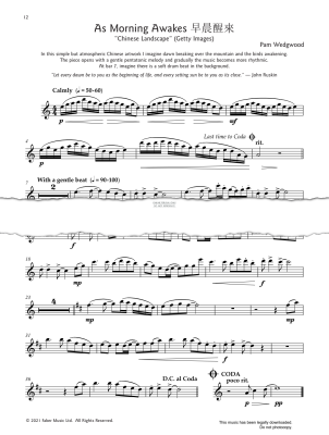 As Morning Awakes, written by Pam Wedgwood for intermediate flute with piano accompaniment, taken from Flute Meditations.