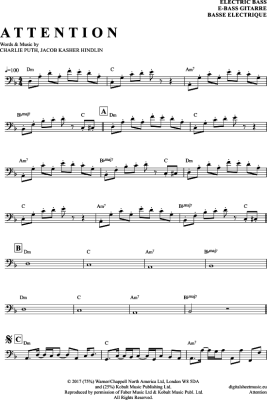 Attention - Sheet Music for Bass Guitar Charlie Puth