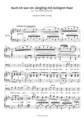 Auch ich war ein Jüngling mit lockigem Haar - aus Der Waffenschmied - Sheet Music for voice + piano Albert Lortzing