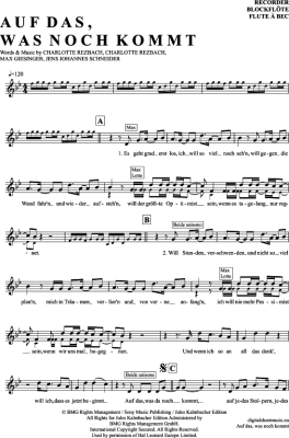Auf Das, Was Noch Kommt - Sheet Music for recorder Lotte und Max Giesinger