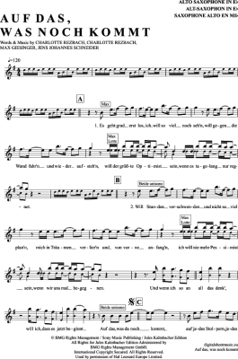 Auf Das, Was Noch Kommt - Sheet Music for Alto Saxophone Lotte und Max Giesinger
