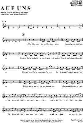 Auf uns - Sheet Music for recorder Andreas Bourani