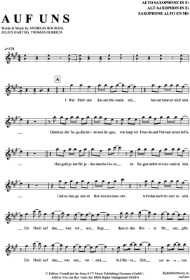 Auf uns - Sheet Music for Alto Saxophone Andreas Bourani