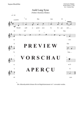 Auld Lang Syne - Nehmt Abschied, Brüder (G - Dur) - Sheet Music for soprano recorder solo + chords Robert Burns