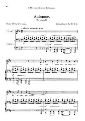 Automne Op.18 No.3 - Sheet Music for Medium Voice and Piano Gabriel Fauré